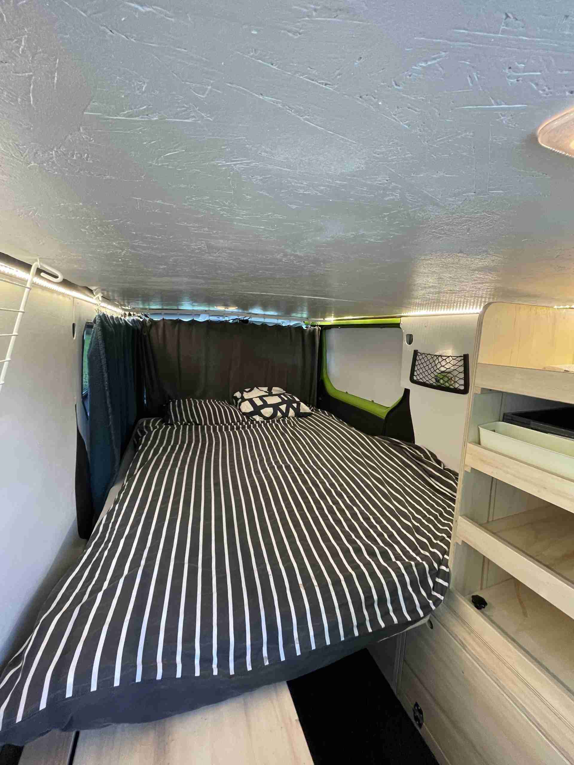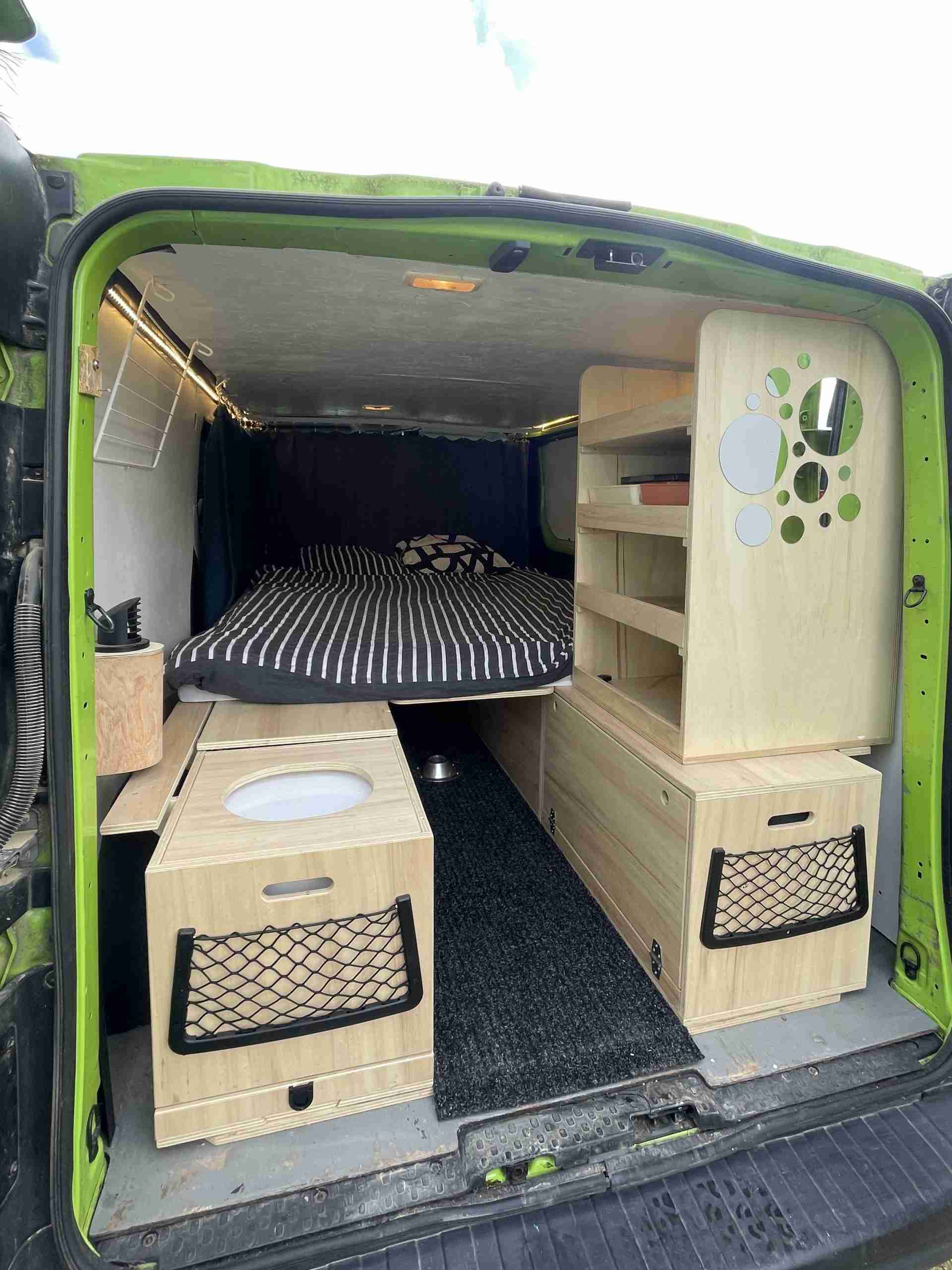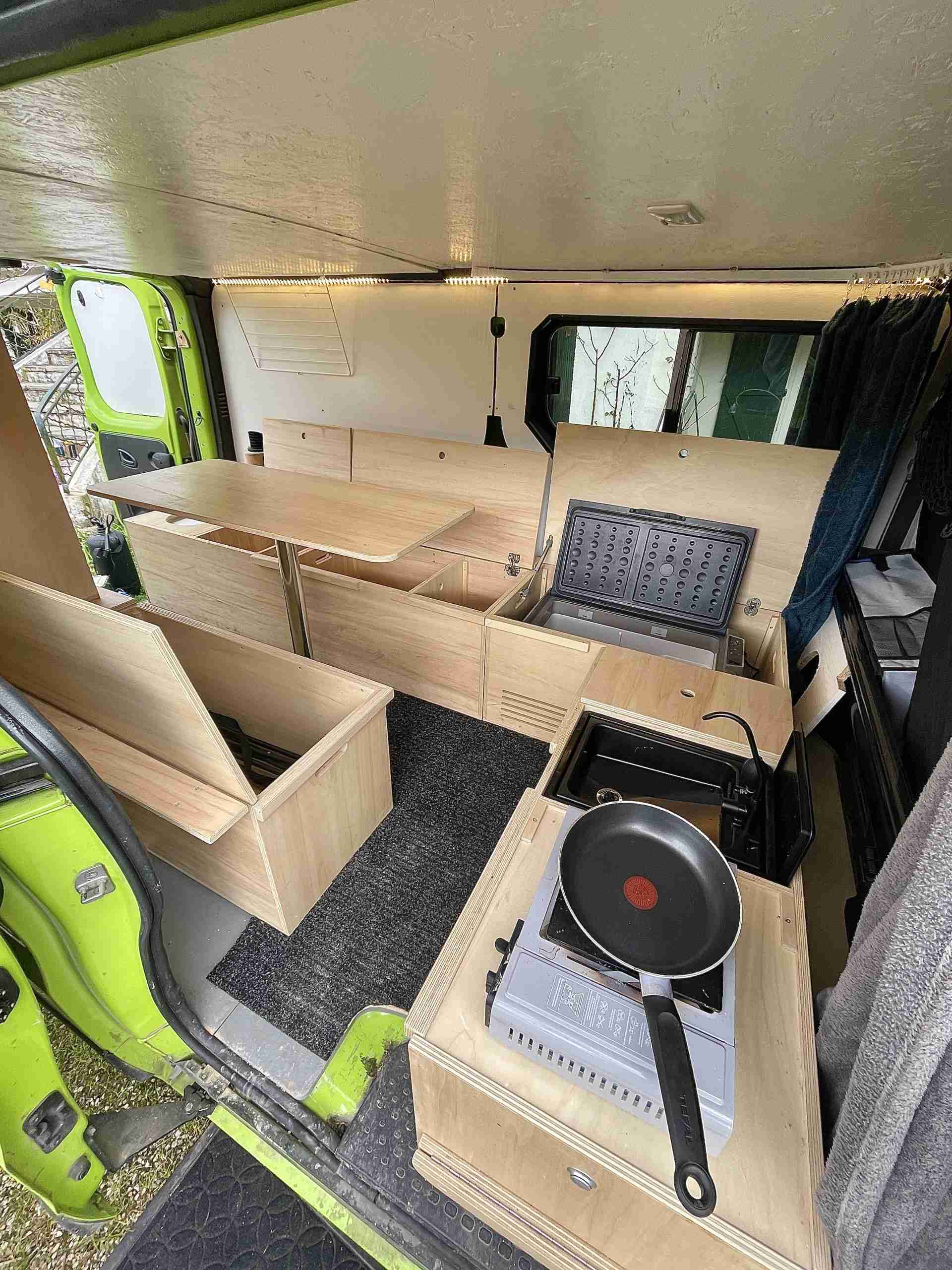 Avec Elio, nous travaillons également main dans la main sur la construction et l’aménagement des vans. Chaque détail est pensé pour allier confort, praticité et design. Nos véhicules sont équipés de rangements astucieux, d’une cuisine coulissante et d’un aménagement en bois minimaliste, parfaits pour explorer le Pays Basque en toute liberté.