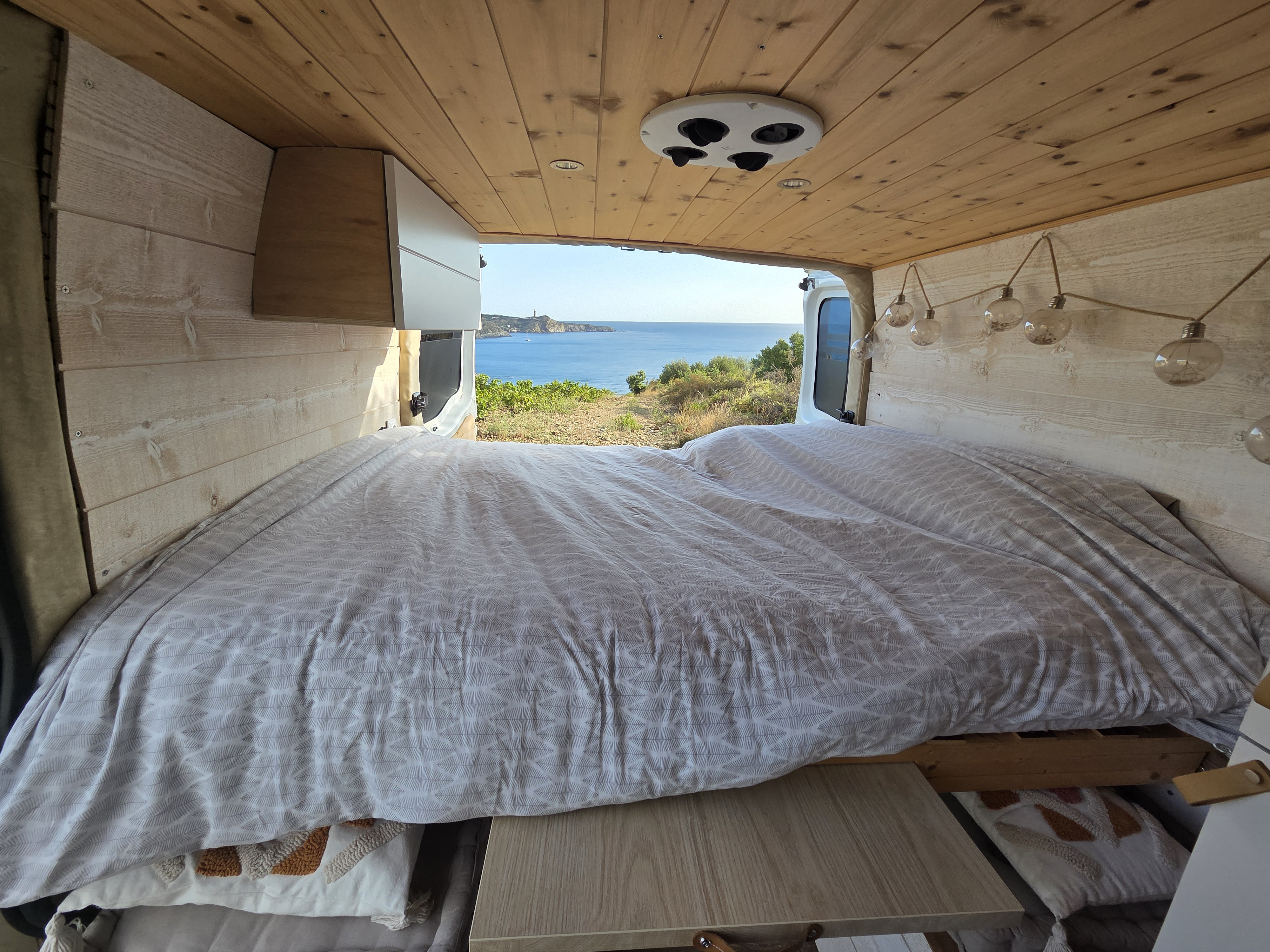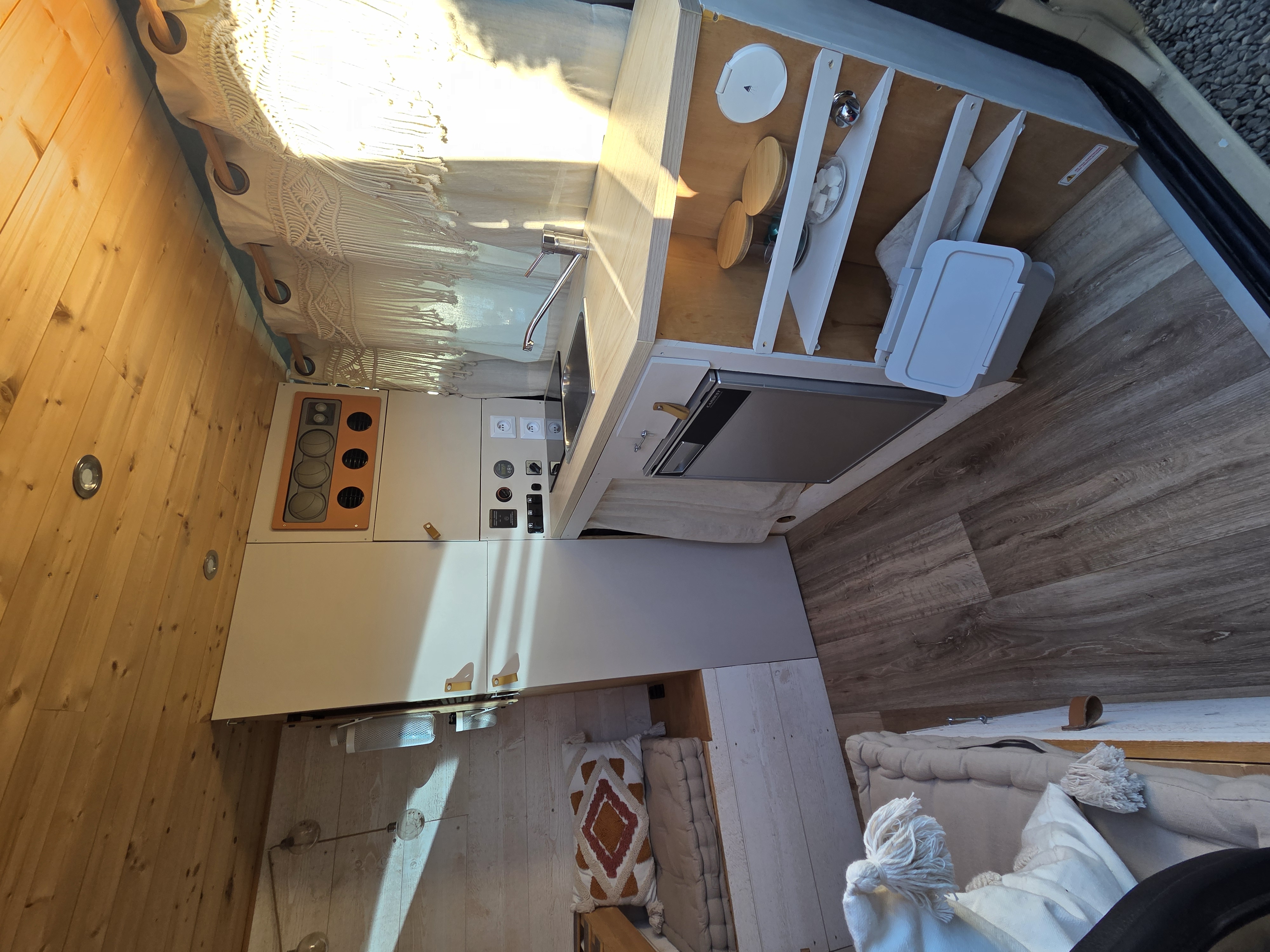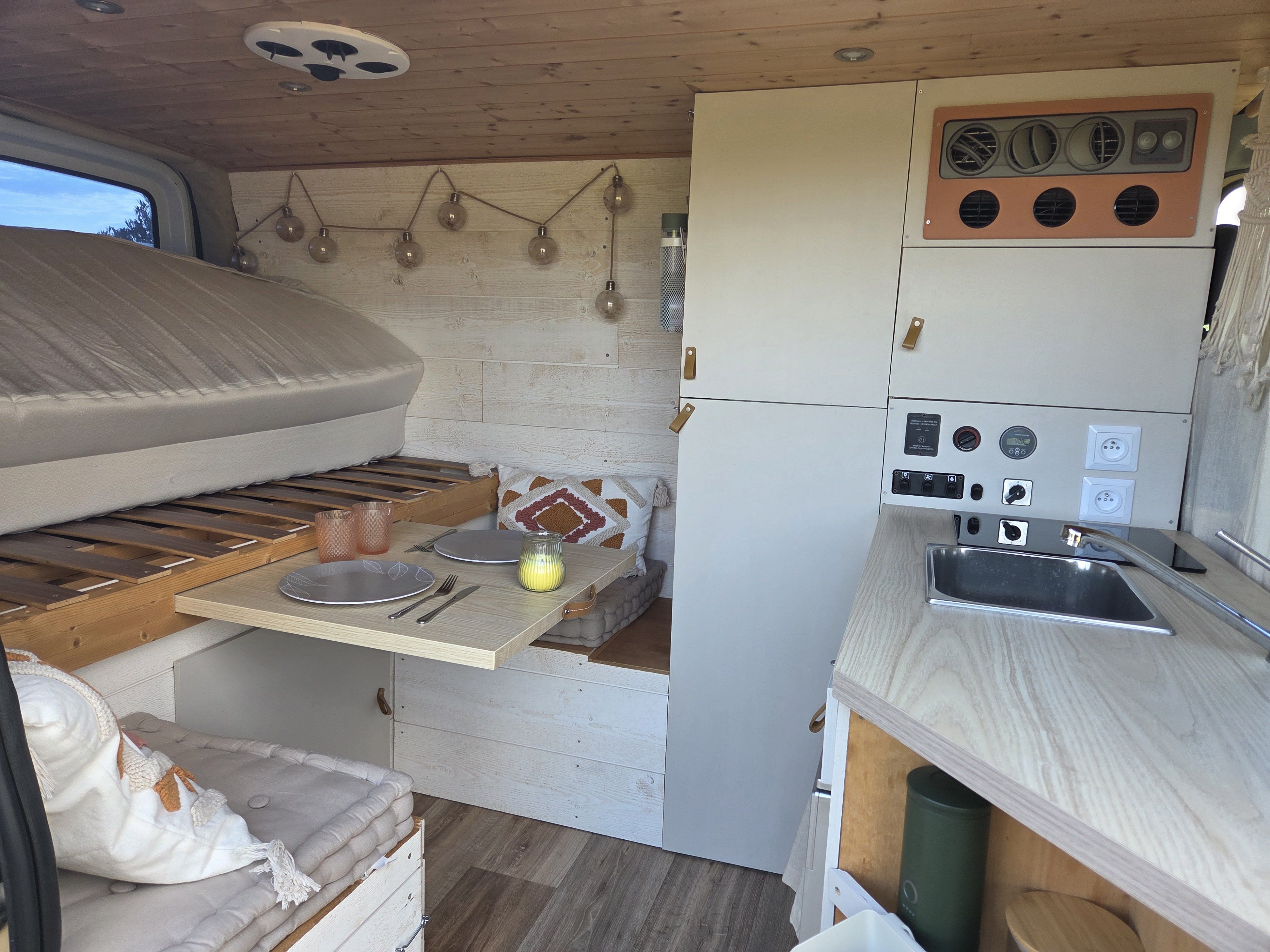 Nous l’avons pensé comme un véritable cocon nomade : ambiance chaleureuse, bois clair, lumières douces et tons naturels.